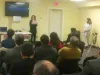 ابتدا خانم ژولیا ویدمن گرداننده برنامه از حزب چپ آلمان ضمن خوشآمد گویی به حاضرین، دلیل برگزاری برنامه، دلایل و نتایج انقلاب بهمن در ایران و نقش چپها در آن، را توضیح داد و سپس به معرفی سخنرانان، مهدی ابراهیمزاده از حزب چپ ایران (فداییان خلق) و نیما مواسات از حزب چپ آلمان و عضو پارلمان آلمان، پرداخت.