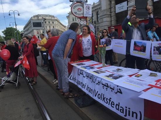 اعضای «حزب چپ ایران (فدائیان خلق)» در وین نیز امسال از اولین ساعات صبح در محل حاضر شدند تا برای اولین بار با نام حزب میز تبلیغاتی شان را برپا کنند. به همین جهت امسال اول ماه مه برای آن ها نیز حال و هوای دیگری داشت. گرچه اعضا و علاقمندان نیروهای چپ هر ساله در مراسم اول ماه مه به اشکال مختلف شرکت می کردند، ولی امسال اول ماه مه، همدلی بیشتری را بین همه فعالان حزب چپ بدنبال خود داشت. هر کس گوشه ای از کار را گرفته بود و خوشحال از این که بالاخره تلاش های چندین ساله، به ثمر نشسته است و امروز بر سر یک میز دور هم گرد آمده اند.