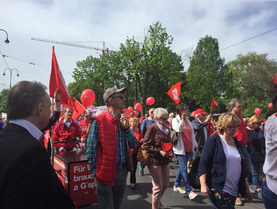 روز اول ماه مه در وین روز ویژه ای است. در این روز مرکز شهر از ساعات صبح برای تردد اتومبیل ها بسته می شود و از تمامی مناطق ۲۳ گانه وین اعضای حزب سوسیال دمکرات، اعضای اتحادیه های کارگری در دسته های متشکل به سوی مرکز شهر و میدان شهرداری وین حرکت می کنند و به تدریج در این میدان تجمع می نمایند. در این روز رهبران حزب سوسیال دمکرات و از جمله شهردار وین، برای تجمع کنندگان سخنرانی می کنند. هم چنین نیروهای چپ دیگر از جمله حزب کمونیست و نیروهای چپ خارجی در وین نیز بعد از رژه نیروهای حزب سوسیال دمکرات راهپیمائی می کنند.