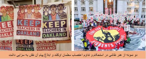این، سرود اعتصابیون قرمزپوش بود. راهپیماییهای اوکلند هنرمندان هیپهاپ مانند بوترالی، زیون آی، میستاه فاب، و بامبو را هم بسیج کرده بود. یک نقطه اوج حضور خانوادههای لاتین در لباس و ماسک لوچالیبره بود که در سراسر شهر سوار وانتهایی با بلندترین صدای موزیک در حمایت از معلمان رژه میرفتند.