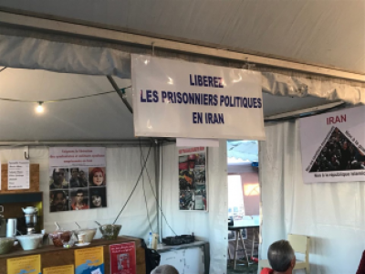در عرفه حزب، افیشی از حرکتهای اعتراضی در ایران که به شکل مثلث درآمده بود و در سه ضلع آن سه شعار نه به تحریم؛ نه به جنگ؛ نه به جمهوری اسلامی ایران آمده بود، نصب شده بود. همچنین پوسترهای بزرگی از سندیکالیستها و فعالین کارگری (اسماعیل بخشی و شش نفر دیگر) که به تازگی برای فعالیت صنفی به صد سال زندان محکوم شدهاند، پوستری در حمایت از مبارزات کارگران، افیش سحر خدایاری (دختر آبی) همراه با شعارهایی برای آزادی زندانیان سیاسی و لغو اعدام بر دیوارههای چادر نصب شده بود.