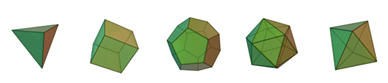 در تاریخ فلسفه طبیعی، افلاطون اولین فیلسوفی بود که برای ذرات میکروسکوپی مدلهای هندسی قائل شد. افلاطون عناصر چهارگانه دوران خود را تشکیل شده از اجسام منظم و متقارن از هندسه اقلیدسی، تصاویر پنجگانهی زیر، تصور مینمود.
