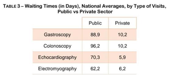 با توجه به شبکههای سیاست اجتماعی اروپا (ESPN) زمان انتظار طولانی، یک منبع مشترک نارضایتی تمام شهروندان اروپایی است. زمان بیش از حد طولانی نیز میتواند در دسترسی به بهداشت، بیعدالتی ایجاد کند. به این صورت که بیماران با درآمد بالا، لیست انتظار در بخش عمومی را با مشاوره با متخصص خصوصی و پرداخت هزینههای اضافی دور میزنند(Baeten et al, 2018). به همین ترتیب پرداختهای غیر رسمی زیر میزی یک عمل رایج در چندین کشور اروپایی است. با یک سرعت مشابه، لیستهای انتظار بیش از حد به طور گسترده در سراسر ایتالیا به وسیلهی آژانسهای مستقل تایید شده است. اگرچه دولت فقط اخیراً شروع به جمعآوری اطلاعات مربوط به لیستهای انتظار کرده است. بنابراین تحلیل منظم تفاوتها در این مورد غیر ممکن است. همانطور که در نمودار 2 و 3 میبینیم، در هر موردی میانگین زمان انتظار (به روز) در دوره زمانی 17-2014 به سرعت رشد داشته است. (بر حسب تحقیقات مستقل آماری) نمودار 3 همچنین اختلاف زمان انتظار برای امکانات خصوصی و دولتی و اختلاف بسیار زیادشان پردهبرمیدارد. با این حال این اطلاعات با محدودیتهایی که از یک گزارش دو نهاد خصوصی (.آر بی ام. و اداره آمار ) وجود دارد کسب شده است.