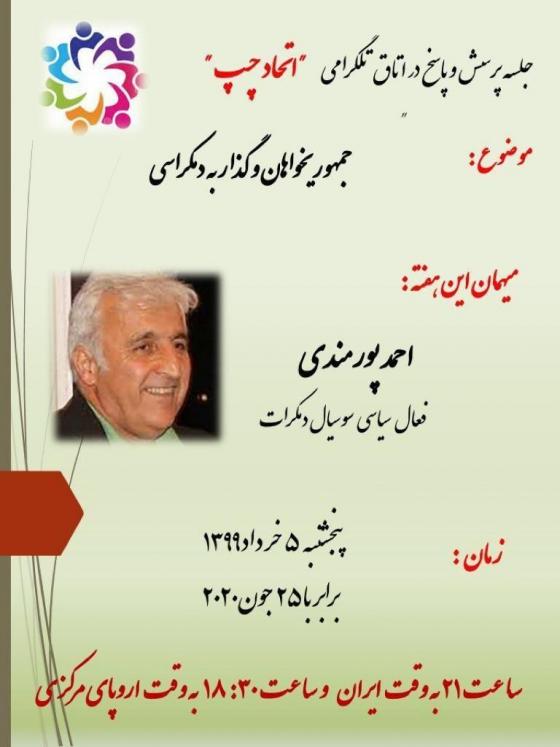 پنجشنبه, 25 ژوئن 2020 - 21:23 جمهوریخواهان و گذار به دمکراسی فایل صوتی احمد پورمندی در اتاق تلگرام "اتحاد چپ" پاسخ داد. قسمت اول قسمت دوم قسمت سوم لینک اتاق اتحاد چپ:https://t.me/joinchat/JSkViEjuYrQbZO8AAoosjQ گفتگو افزودن دیدگاه جدید نام شما پست الکترونیکی محتوای این فیلد خصوصی است و به صورت عمومی نشان داده نخواهد شد. صفحه خانگی موضوع دیدگاه About text formats متن ساده خطوط و پاراگرافها بطور خودکار اعمال میشوند. نشانیهای وب و پست الکتونیکی به صورت خودکار به پیوندها تبدیل میشوند. CAPTCHA Get new captcha! چه کدی در تصویر میبینید؟ کاراکترهای نمایش داده شده در تصویر را وارد کنید. لطفا حروف را با خط فارسی و بدون فاصله وارد کنید چاپ