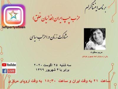شنبه, 15 اوت 2020 - 13:59 مشارکت زنان در احزاب سیاسی لینک اینستاگرام حزب چپ ایران(فدائیان خلق):https://www.instagram.com/leftpartyofiran اطلاعیهها و فراخوانها افزودن دیدگاه جدید نام شما پست الکترونیکی محتوای این فیلد خصوصی است و به صورت عمومی نشان داده نخواهد شد. صفحه خانگی موضوع دیدگاه About text formats متن ساده خطوط و پاراگرافها بطور خودکار اعمال میشوند. نشانیهای وب و پست الکتونیکی به صورت خودکار به پیوندها تبدیل میشوند. CAPTCHA Get new captcha! چه کدی در تصویر میبینید؟ کاراکترهای نمایش داده شده در تصویر را وارد کنید. لطفا حروف را با خط فارسی و بدون فاصله وارد کنید چاپ