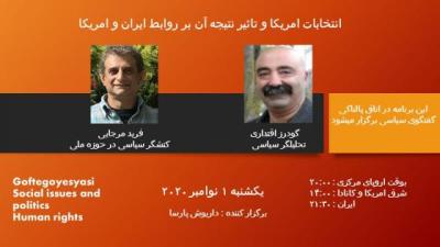 شنبه, 17 اکتبر 2020 - 23:54 انتخابات آمریکا و تأثیرنتیجه آن بر روابط ایران و آمریکا اتاق «گفتگوی سیاسی» برگزار می کند؛ سخنرانان: گودرز اقتداری - تحلیلگر سیاسی، و فرید مرجائی - فعال سیاسی در حوزه ملی مدیر برنامه: داریوش پارسا گفتگو افزودن دیدگاه جدید نام شما پست الکترونیکی محتوای این فیلد خصوصی است و به صورت عمومی نشان داده نخواهد شد. صفحه خانگی موضوع دیدگاه About text formats متن ساده خطوط و پاراگرافها بطور خودکار اعمال میشوند. نشانیهای وب و پست الکتونیکی به صورت خودکار به پیوندها تبدیل میشوند. CAPTCHA Get new captcha! چه کدی در تصویر میبینید؟ کاراکترهای نمایش داده شده در تصویر را وارد کنید. لطفا حروف را با خط فارسی و بدون فاصله وارد کنید چاپ