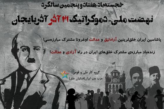 پنجشنبه, 10 دسامبر 2020 - 21:03 خجسته باد هفتادوپنجمین سالگرد نهضت ملی - دمکراتیک ۲۱ آذر آذربایجان! گوناگون افزودن دیدگاه جدید نام شما پست الکترونیکی محتوای این فیلد خصوصی است و به صورت عمومی نشان داده نخواهد شد. صفحه خانگی موضوع دیدگاه About text formats متن ساده خطوط و پاراگرافها بطور خودکار اعمال میشوند. نشانیهای وب و پست الکتونیکی به صورت خودکار به پیوندها تبدیل میشوند. CAPTCHA Get new captcha! چه کدی در تصویر میبینید؟ کاراکترهای نمایش داده شده در تصویر را وارد کنید. لطفا حروف را با خط فارسی و بدون فاصله وارد کنید چاپ
