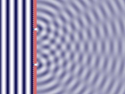 **اگر نور در مسیر خود از چشمه تا پرده تنها ویژگی ذرهای خود را نشان میداد، تعداد فوتونهایی که به هر نقطه از پرده میرسیدند، جمع تعداد فوتونهایی بود که از شکاف سمت چپ و از شکاف سمت راست آمدهاند. به زبان دیگر، شدت نور در هر جای پرده حاصلجمع شدت وقتی است که شکاف سمت چپ را پوشانده باشیم و وقتی که شکاف سمت راست را پوشانده باشیم؛ ولی آزمایش نشان میدهد که اگر هر دو شکاف را باز بگذاریم، شدت نور در بعضی جاها بیشتر و در بعضی جاها کمتر از انتظار ما خواهد بود. این پدیده نمایانگر تداخل سازنده و ویرانگر امواج نور است، و با ماهیت جمعشدنی ذرات نور قابل توضیح نیست.