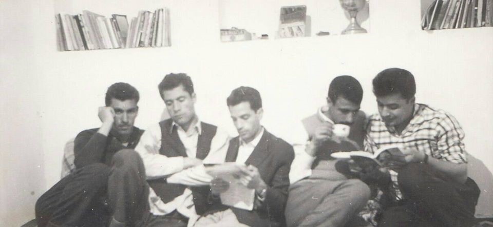 از راست: غلامحسین فرنود، صمد بهرنگی، ناشناس، علی زاخری و کاظم سعادتی در ممقان ۱۳۴۴
