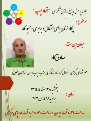 صادق کار عضو شورای مرکزی و مسئول گروه کار کارگری خزب چپ ایران(فدائیان خلق)