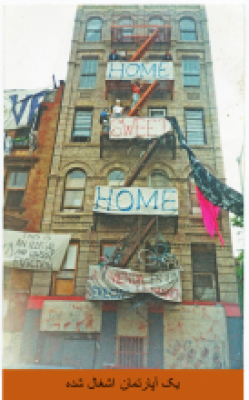 در اواسط دهه 1960، بسیاری از صاحبخانههای نیویورک ساختمانهای آپارتمانی خود در محلههای کم درآمد را رها کردند، زیرا این خانه ها را چندان سودآور نمیدانستند. در آن دهه و تا پایان آن سالانه به طور متوسط 38000 واحد مسکونی متروکه می شدند. مقامات شهر به دلیل عدم پرداخت مالیات این خانه ها و تخلفات جدی از مقررات مربوطه مالکیت آنها را به عنوان "آخرین صاحبخانه" به عهده گرفت. در سال 1969، گروهی از مردم ساکن خیابان 102 شرقی در مانهاتان، که عمدتاً از خانوادههای پورتوریکویی تشکیل شده بودند، با اقدام مستقیم دو ساختمان را تصرف کردند و با تشکیل تعاونی مبتنی بر "سهام زحمت" شروع به بازسازی آنها کردند. این اقدام بلافاصله به جنبشی در مجل و محلات همسایه فراروئید. در سال 1970 گروه های دیگری از مردم، با شعار "حق همگانی برای داشتن جائی برای زندگی" دست به تصرف خانه های خالی در خیابانهای 15، 111 و 122 غربی، و در طول خیابان 87 جادۀ کلمبوس زدند. مقامات شهر با بیرون راندن بیشتر ساکنان متحصن واکنش نشان دادند، اما اعتراض گسترده به این اقدام مقامات منجر به اعطای کنترل مدیریت برخی از ساختمانها به سازمانهای اجتماعی برای بازسازی آنها توسط خود "مستاجران" شد. چندین سازمان غیرانتفاعی توسعه تعاونی از جمله هیئت کمک به خانه های شهری (UHAB) تشکیل شدند و به سرعت به سازمانهائی مؤثر تبدیل شدند. در سال 1973، 286 ساختمان به عنوان خانه های مشمول "اشغال خانه های شهری" در نظر گرفته شدند، اما موانع تأمین مالی برای بازسازی آنها موجب کاهش قابل توجه این تعداد شد و تنها 48 گروه از ساکنان آتی ساختمانهای مورد نظر موفق به ایجاد تعاونیهای کم درآمدی با سرمایۀ محدود، و تصاحب خانه ها و بازسازی آنها شدند.