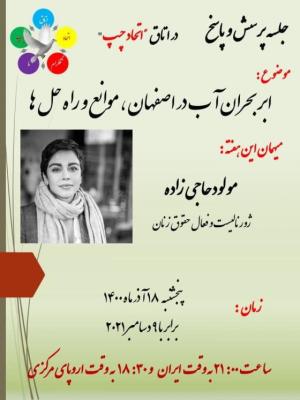 پنجشنبه, 9 دسامبر 2021 - 23:34 ابربحران آب در اصفهان، موانع و راه حل ها ابربحران آب در اصفهان ، موانع و راه حل هامولود حاجی زاده – ژورنالیست و فعال حقوق زنان ، در اتاق تلگرام اتحاد چپ پنجشنبه ۱۸ آذر ماه برابر با ۹ دسامبر ۱۴۰۰ گفتگو افزودن دیدگاه جدید نام شما پست الکترونیکی محتوای این فیلد خصوصی است و به صورت عمومی نشان داده نخواهد شد. صفحه خانگی موضوع دیدگاه About text formats متن ساده خطوط و پاراگرافها بطور خودکار اعمال میشوند. نشانیهای وب و پست الکتونیکی به صورت خودکار به پیوندها تبدیل میشوند. CAPTCHA Get new captcha! چه کدی در تصویر میبینید؟ کاراکترهای نمایش داده شده در تصویر را وارد کنید. لطفا حروف را با خط فارسی و بدون فاصله وارد کنید چاپ