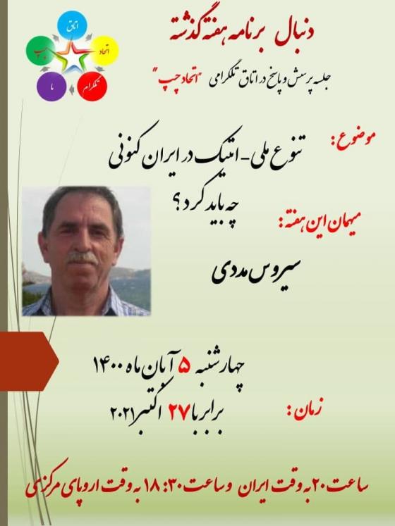 سهشنبه, 26 اکتبر 2021 - 00:25 تنوع ملی - اتنیک در ایران کنونی - چه باید کرد؟ لینک اتاق اتحاد چپ:https://t.me/joinchat/SO5itL5KeilWqppr اطلاعیهها و فراخوانها افزودن دیدگاه جدید نام شما پست الکترونیکی محتوای این فیلد خصوصی است و به صورت عمومی نشان داده نخواهد شد. صفحه خانگی موضوع دیدگاه About text formats متن ساده خطوط و پاراگرافها بطور خودکار اعمال میشوند. نشانیهای وب و پست الکتونیکی به صورت خودکار به پیوندها تبدیل میشوند. CAPTCHA Get new captcha! چه کدی در تصویر میبینید؟ کاراکترهای نمایش داده شده در تصویر را وارد کنید. لطفا حروف را با خط فارسی و بدون فاصله وارد کنید چاپ