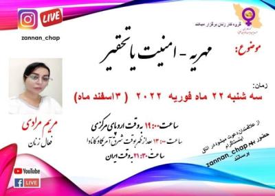 چهارشنبه, 16 فوریه 2022 - 01:15 مهریه – امنیت یا تحقیر مریم مرادی: در اتاق اینستاگرام گروه کار زنان https://www.instagram.com/zannan_chap زنان افزودن دیدگاه جدید نام شما پست الکترونیکی محتوای این فیلد خصوصی است و به صورت عمومی نشان داده نخواهد شد. صفحه خانگی موضوع دیدگاه About text formats متن ساده خطوط و پاراگرافها بطور خودکار اعمال میشوند. نشانیهای وب و پست الکتونیکی به صورت خودکار به پیوندها تبدیل میشوند. CAPTCHA Get new captcha! چه کدی در تصویر میبینید؟ کاراکترهای نمایش داده شده در تصویر را وارد کنید. لطفا حروف را با خط فارسی و بدون فاصله وارد کنید چاپ