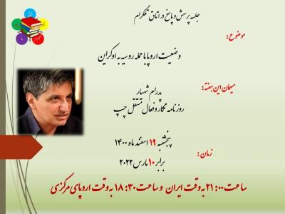 جمعه, 11 مارس 2022 - 22:06 وضعیت اروپا با حمله روسیه به اوکراین پدرام شهیار ، در اتاق تلگرام اتحاد چپ پنجشنبه ۱۹ اسفند ماه برابر با ۱۰ مارس ۲۰۲۲ساعت ۲۱:۰۰ به وقت ایران و ساعت ۱۸:۳۰ به وقت اروپای مرکزی ساعت ۱۲:۳۰ به وقت شرق امریکا https://t.me/+SO5itGarea0c4bwe گفتگو افزودن دیدگاه جدید نام شما پست الکترونیکی محتوای این فیلد خصوصی است و به صورت عمومی نشان داده نخواهد شد. صفحه خانگی موضوع دیدگاه About text formats متن ساده خطوط و پاراگرافها بطور خودکار اعمال میشوند. نشانیهای وب و پست الکتونیکی به صورت خودکار به پیوندها تبدیل میشوند. CAPTCHA Get new captcha! چه کدی در تصویر میبینید؟ کاراکترهای نمایش داده شده در تصویر را وارد کنید. لطفا حروف را با خط فارسی و بدون فاصله وارد کنید چاپ