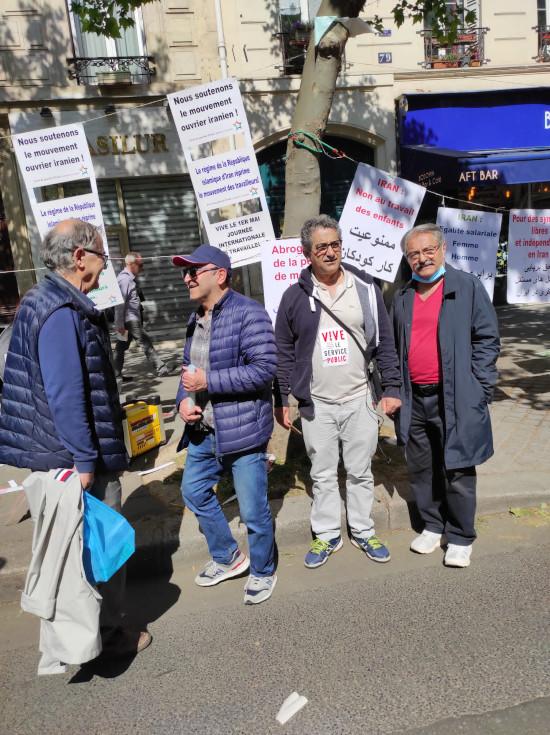 فعالین حزب چپ ایران(فدائیان خلق) فرانسه در مسیر حرکت راهپیمایان با بر پائی میز و نصب شعار ها و پوستر بزرگ شده حزبمان و پخش موزیک در این تظاهرات شرکت کردند،شعار ها وبخصوص پوستر حزب چپ ایران (فدائیان خلق) مورد توجه بسیار قرار گرفت. رفقای ما همچنین اقدام به پخش متن فرانسه اعلامیه بزرگداشت اول ماه مه حزب و ترجمه «خواسته های کمیته هماهنگی بین سندیکائی ایران »کردند . تمامی شعار های ستاد برگزاری اول ماه حزب به زبان فرانسه و نیز ده شعار عمومی و کارگری به زبانهای فارسی و فرانسه به نمایش گذاشته شد.