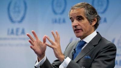 رافائل گروسی، رئیس آژانس بین المللی انرژی اتمی، وابسته به سازمان ملل متحد، هنگام کنفرانس مطبوعاتی در وین در مورد مسائل هسته ای تهران