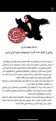 ۳- این قیام بزرگ ملت ، همه ی ما را به اتحاد و همبستگی کامل احزاب و سازمانها و تشکلهای مطالبه گر فرا خوانده است .