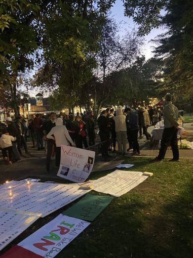 در این مراسم شعارهای عمده حول اعتراض به کشته شدن فرشته جوان ژینا امینی بود.