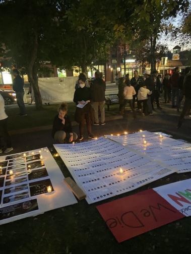 در نمایشگاه این تظاهرات علاوه بر عکسهای مهسا که در دستان همه شرکت کنندگان بود، عکسهای ۶۰۰ نفر از جانباختگان زندانی سیاسی چپ که شامل همه گروههای سیاسی دهه ۶۰ بود با شرح حال و وابستگی سیاسی آنها به نمایش گذاشته شد که مورد استقبال شرکت کنندگان مراسم قرار گرفت بطوریکه برای آنها شمع روشن میکردند.