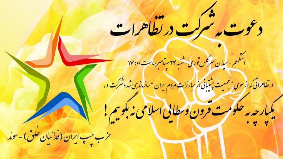 در تظاهراتی که از سوی "جمعیت پشتیبانی از مبارزات مردم ایران" سازماندهی شده شرکت و