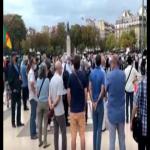 تصویربزرگی از زنده یاد نوید افکاری، همراه با جمله تاریخی وی چندی قبل از اعدام مبنی بر اینکه: "این ها طنابی برای دار زدن دارند، دنبال گردنی می گردند!" حالت خاصی به تجمع بخشیده بود، و توجه همگان، ازجمله فرانسوی ها و توریست های حاضر، را به شدت جلب می کرد.