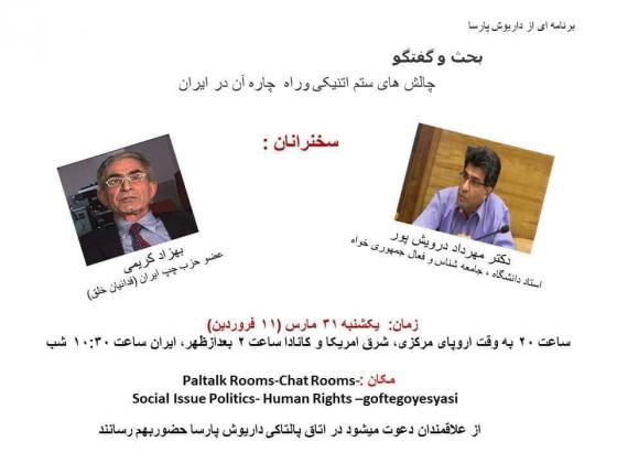 چهارشنبه, 27 مارس 2019 - 20:35 چالش های ستم اتنیکی و راه چاره آن در ایران اطلاعیهها و فراخوانها افزودن دیدگاه جدید نام شما پست الکترونیکی محتوای این فیلد خصوصی است و به صورت عمومی نشان داده نخواهد شد. صفحه خانگی موضوع دیدگاه About text formats متن ساده خطوط و پاراگرافها بطور خودکار اعمال میشوند. نشانیهای وب و پست الکتونیکی به صورت خودکار به پیوندها تبدیل میشوند. CAPTCHA Get new captcha! چه کدی در تصویر میبینید؟ کاراکترهای نمایش داده شده در تصویر را وارد کنید. لطفا حروف را با خط فارسی و بدون فاصله وارد کنید چاپ