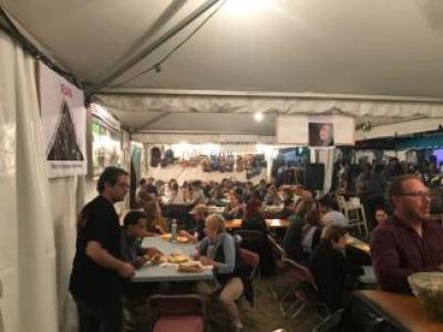 در عرفه حزب، افیشی از حرکتهای اعتراضی در ایران که به شکل مثلث درآمده بود و در سه ضلع آن سه شعار نه به تحریم؛ نه به جنگ؛ نه به جمهوری اسلامی ایران آمده بود، نصب شده بود. همچنین پوسترهای بزرگی از سندیکالیستها و فعالین کارگری (اسماعیل بخشی و شش نفر دیگر) که به تازگی برای فعالیت صنفی به صد سال زندان محکوم شدهاند، پوستری در حمایت از مبارزات کارگران، افیش سحر خدایاری (دختر آبی) همراه با شعارهایی برای آزادی زندانیان سیاسی و لغو اعدام بر دیوارههای چادر نصب شده بود.