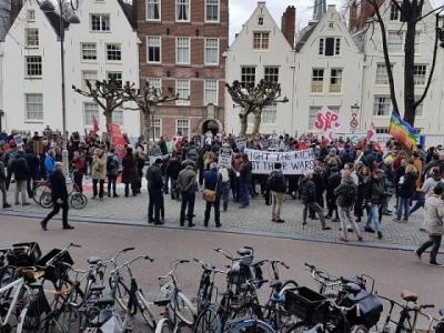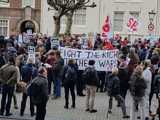 به دعوت حزب سوسیالیست هلند، شنبه یازده ژانویه تظاهراتی علیه تدارک جنگ امریکا با ایران برگزار شد. دهها تن در این تظاهرات ضد جنگ شرکت کردند و به تشدید اقدامات تحریک آمیز امریکا جهت گسترش برخورد نظامی با ایران اعتراض کردند. در این گردهمآیی، چند تن از مسئولین حزب سوسیالیست و سبزها سخنرانی داشتند و ضمن اعلام مخالفت با سرکوب آزادیخواهان توسط حاکمان دیکتاتور ایران، اقدامات جنگ طلبانه امریکا را که با ترور قاسم سلیمانی شرایط منطقه را بسیار به تشنج کشاندند را محکوم کردند و خواستار واگزاری تعیین روند تحولات و آینده کشور ایران به مردم آن کشور شدند. اعضای حزب چپ ایران (فدائیان خلق) همچون دیگر گروه های ایرانی، از این تظاهرات پشتیبانی و در آن شرکت کردند و با پخش اعلامیه، مواضع حزب چپ، در رابطه با خطر جنگ و نتایج زیانبار آن را برای شرکت کنندگان توضیح دادند.