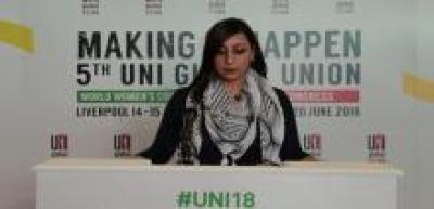 در فلسطین، که اتحادیه ها نقش مهمی در عملکرد های مختلف اجتماعی بازی می کنند، ایمان ابوصلاح عضو فدراسیون عمومی اتحادیه های صنفی فلسطین (PGFTU) می گوید که زنان فلسطینی درگیر نبرد در دو جبهه هستند، یکی علیه اشغال سرزمین های فلسطینی و دیگری علیه مردسالاری نهادینه شده در اجتماع: "گرچه زنان 49% کل جمعیت را نمایندگی می کنند، نقش سیاسی آنها در نمایندگی سیاسی و جایگاه در هرم تصمیم گیری ها ناچیز و قابل اغماض است. این اصل ناشی از چالش های موجود در صحنه های سیاسی، اجتماعی و فرهنگی موجود است که جامعه فلسطینی باید هنوز به آن پاسخ گوید." او در ادامه می گوید: "جامعه فلسطین هنوز با یک سیستم مردسالار اداره می شود، با سنت و آداب و رسوم سرکوبگر. زنان سعی دارند که تبعیض تحمیلی بین زنان و مردان را ازمیان بردارند."