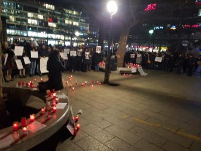 عصرجمعه 27 دی ماه 1398 در اعتراض به جنایت هولناک سرنگون کردن هواپیمای مسافر بری اوکرایینی توسط سپاه پاسداران وکشتن 176 تن سرنشنینان آن و همچنین گرامیداشت یاد جانبختگان قیام آبان ماه گردهمایی با جمع زیادی از ایرانیان ساکن برلین وبه دعوت «کمیته پشتیبانی از مبارزات دمکراتیک مردم ایران – برلین» برگزار شد. شرکت کننده گان در این گردهمایی با روشن کردن شمع ،سر دادن شعارهایی علیه نظام ضد مردمی جمهوری اسلامی ضمن گرامیداشت یاد جانباختگان و اعلام همبستگی و همدردی با مردم دغدار ایران با بر افروختن شمع بیاد قلب هایی که بر اثر جنایت جمهوری اسلامی دیگر نمی تپد ، خواستار محاکمه عاملان این جنایت شدند.