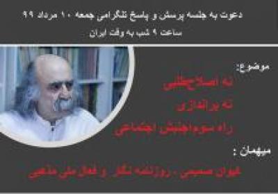 - جناب صمیمی عزیز، بدون تردید شما و ما خواهان دخالت خارجی در تحولات داخلی نیستیم اما بر طبق همان مطالبات مردمی و طبقات بارخوردان بر اساس واقعیت عینی می بینیم جنبش آبان ماه از اعتراضات بهبهان به عنوان یک شهر نابرخوردار آغاز شد و در ماه گذشته هم این شهر پیشقراول اعتراض نان، کار، آزادی شد به این نتیجه می رسیم که حتی برانداری وقتی مستقل از هدف های امپریالیستی و منوط به اراده آزاد مردم جان به لب رسیده باشد ما باید در کنار آن باشیم، وقتی که راه اصلاح و رفرم بسته باشد رادیکالیسم انقلابی اجتناب ناپذیر است. می خواستم نظر شما را در این خصوص بدانم؟