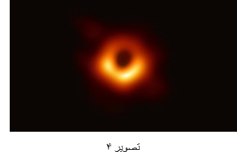تصویر۴: سیاهچالهی کلانجرمِ کهکشانM87 با شعاع شوارتزشیلد حدود۱۹میلیاردکیلومتر را که از محاسبهی تصویرهای رادیوئی، گرفته شده توسط تلسکوپ افقِ رویداد، بدستآمده است نشان میدهد.۱۴