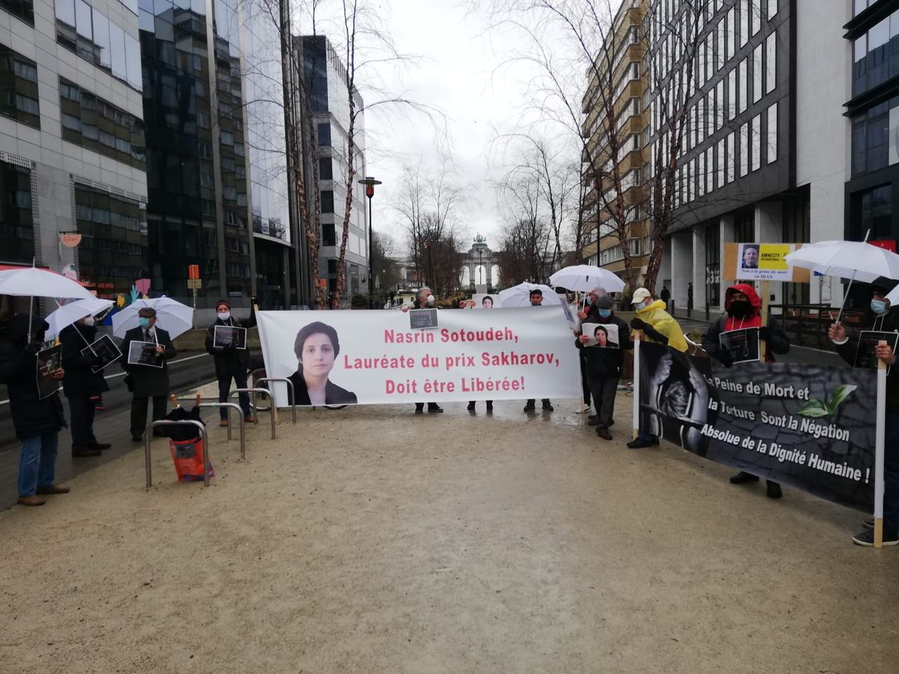 تشکل "کارزار حمایت از نسرین ستوده" به مناسبت فرا رسیدن ده دسامبر روز جهانی حقوق بشر تصمیم گرفت آکسیونی را در برابر دفاتر رسمی اتحادیه اروپا در میدان شومن در بروکسل سازماندهی و برگزار کند. در این آکسیون با وجود هوای سرد و بارانی تعدادی از ایرانیان آزادیخواه و مدافع حقوق بشر ساکن بلژیک شرکت کردند. ایرانیان با در دست داشتن شعارها و پلاکاردهای فرانسوی زبان، پوسترها و عکس های زندانیان سیاسی و آفیش های نه به اعدام و لغو حکم اعدام دکتر احمد رضا جلالی و آزادی فوری و بدون قيد و شرط همه زندانيان سياسی- عقیدنی در این آکسیون حضور یافتند.