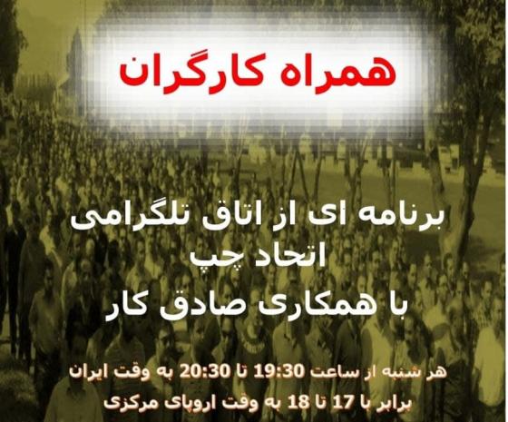 یکشنبه, 21 نوامبر 2021 - 18:50 همراه با کارگران همراه با کارگران برنامه ای از اتاق تلگرام اتحاد چپبا همکاری صادق کارشنبه ها از ساعت ۱۹:۳۰تا ۲۰:۳۰ بوقت ایران گفتگو افزودن دیدگاه جدید نام شما پست الکترونیکی محتوای این فیلد خصوصی است و به صورت عمومی نشان داده نخواهد شد. صفحه خانگی موضوع دیدگاه About text formats متن ساده خطوط و پاراگرافها بطور خودکار اعمال میشوند. نشانیهای وب و پست الکتونیکی به صورت خودکار به پیوندها تبدیل میشوند. CAPTCHA Get new captcha! چه کدی در تصویر میبینید؟ کاراکترهای نمایش داده شده در تصویر را وارد کنید. لطفا حروف را با خط فارسی و بدون فاصله وارد کنید چاپ