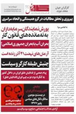 یکشنبه, 19 دسامبر 2021 - 13:27 «کار داخل»، دور دوم - شماره ۳ در این شماره میخوانید: - سرمقاله: به کدامین سو؟- یورش نمایندگان سرمایهداری به ته مانده قانون کار؛- بحران آب، یا بحران جمهوری اسلامی؟- آرمان های نهضت ۲۱ آذر زنده اند!- و ... کار داخل، دور دوم شماره ۳ در فرمت پی. دی. اف. گوناگون «کار داخل»، دور دوم - شماره ۳ «کار داخل»، دور دوم - شماره ۲ «کار داخل»، دور دوم - شماره ۱ افزودن دیدگاه جدید نام شما پست الکترونیکی محتوای این فیلد خصوصی است و به صورت عمومی نشان داده نخواهد شد. صفحه خانگی موضوع دیدگاه About text formats متن ساده خطوط و پاراگرافها بطور خودکار اعمال میشوند. نشانیهای وب و پست الکتونیکی به صورت خودکار به پیوندها تبدیل میشوند. CAPTCHA Get new captcha! چه کدی در تصویر میبینید؟ کاراکترهای نمایش داده شده در تصویر را وارد کنید. لطفا حروف را با خط فارسی و بدون فاصله وارد کنید چاپ