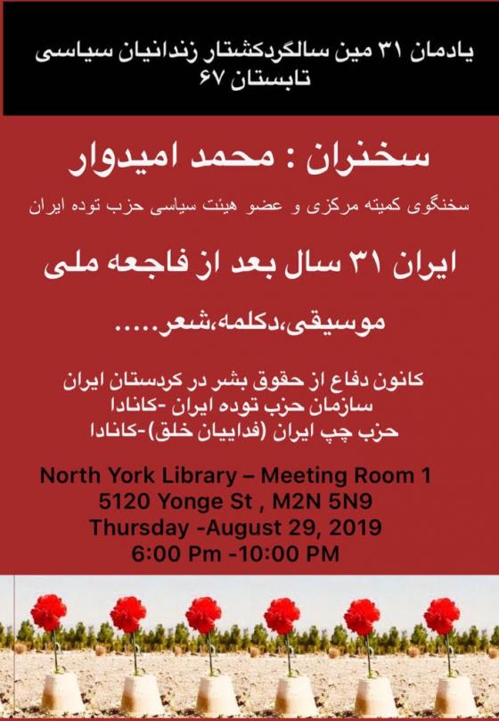 جمعه, 2 اوت 2019 - 20:05 یادمان ۳۱- مین سالگرد کشتار زندانیان سیاسی تابستان ۶۷ (فاجعه ملی) گزارش افزودن دیدگاه جدید نام شما پست الکترونیکی محتوای این فیلد خصوصی است و به صورت عمومی نشان داده نخواهد شد. صفحه خانگی موضوع دیدگاه About text formats متن ساده خطوط و پاراگرافها بطور خودکار اعمال میشوند. نشانیهای وب و پست الکتونیکی به صورت خودکار به پیوندها تبدیل میشوند. CAPTCHA Get new captcha! چه کدی در تصویر میبینید؟ کاراکترهای نمایش داده شده در تصویر را وارد کنید. لطفا حروف را با خط فارسی و بدون فاصله وارد کنید چاپ