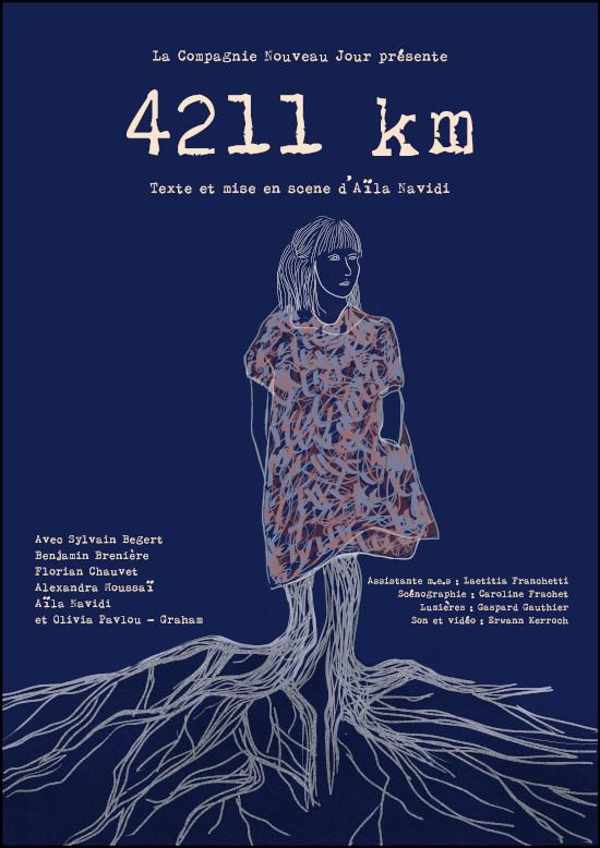 در روزهای ۲۱ و ۲۲ ژوئن ۲۰۲۲، در ناحیهی ۱۳ پاریس، تئاتر «۴۲۱۱ کیلومتر - فاصلهی تهران-پاریس»، به نویسندگی و کارگردانی آیلا نویدی بهروی صحنه آمد.