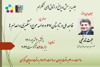 فاجعه ملی در تابستان ۶۷ و ادامه موج دستگیری و اعدام ها حجت نارنجی- در اتاق تلگرام بکتاش آبتین و اتحاد چپ پنجشنبه ۳ شهریور ماه برابر با ۲۵ ماه آگوست ۲۰۲۲