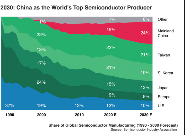 نمودار شماره 8. [پیش بینی ] برتری چین در تولید نیمه نهایی در سال 2030